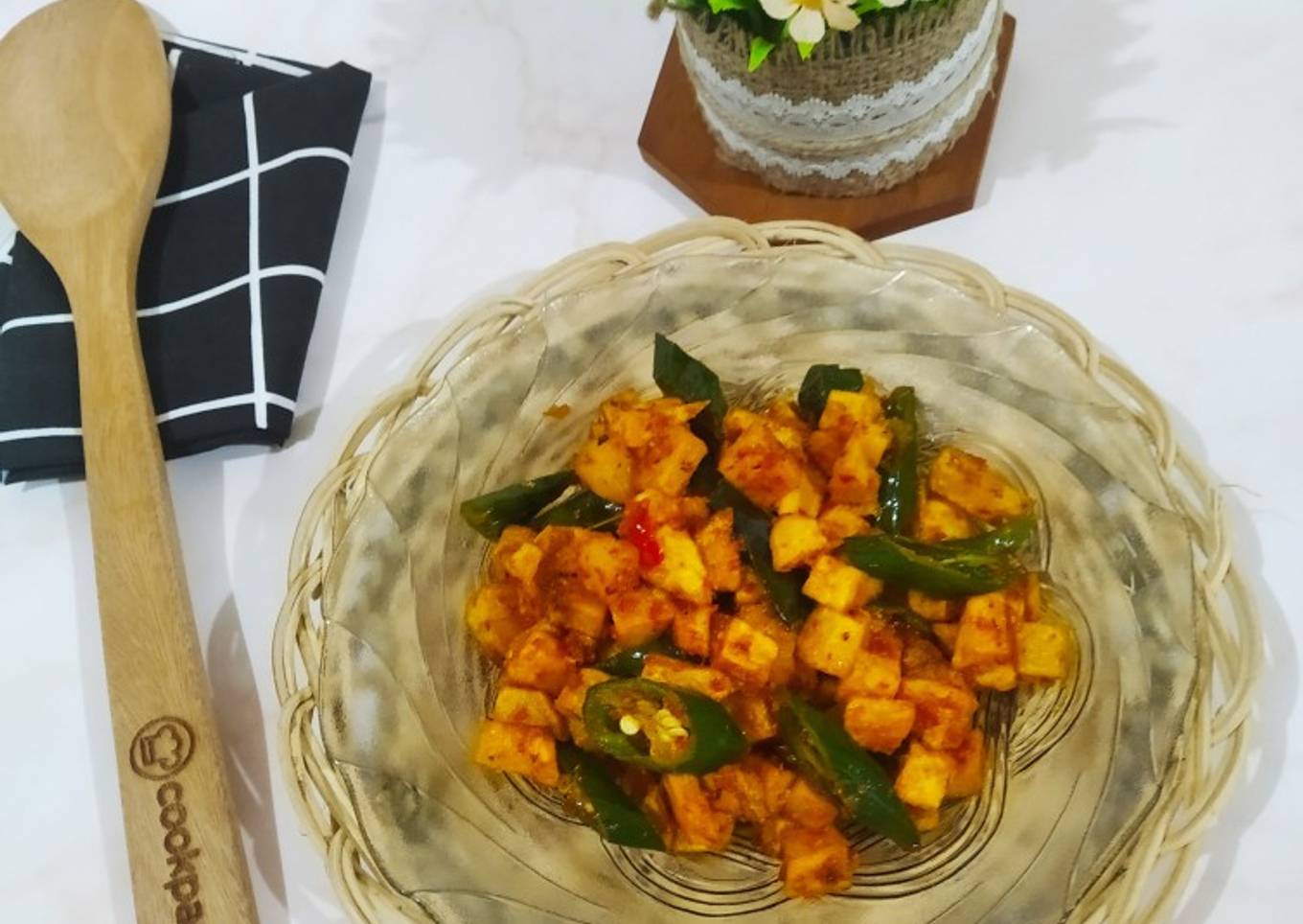 - Tambahkan cabe hijau. Tumis sebentar. Masukkan kentang. Aduk rata. Koreksi rasa, angkat dan sajikan.