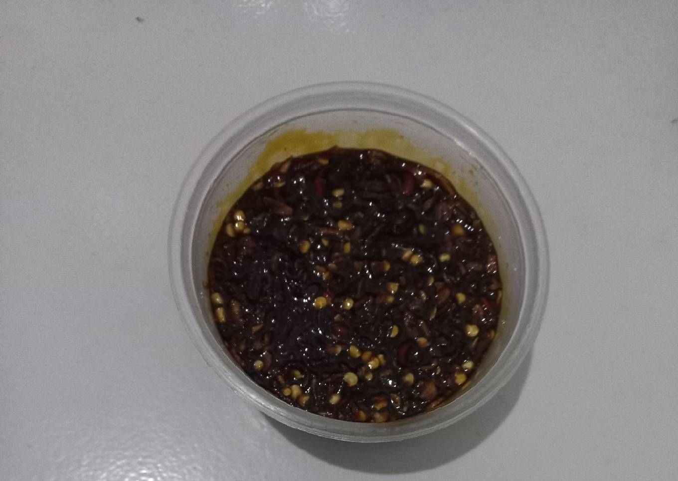 - Masukkan bawang goreng ke potongan cabe, beri kecap sedikit dulu utuk ulenin biar pedas sm bawang nya menyatu di kecap.