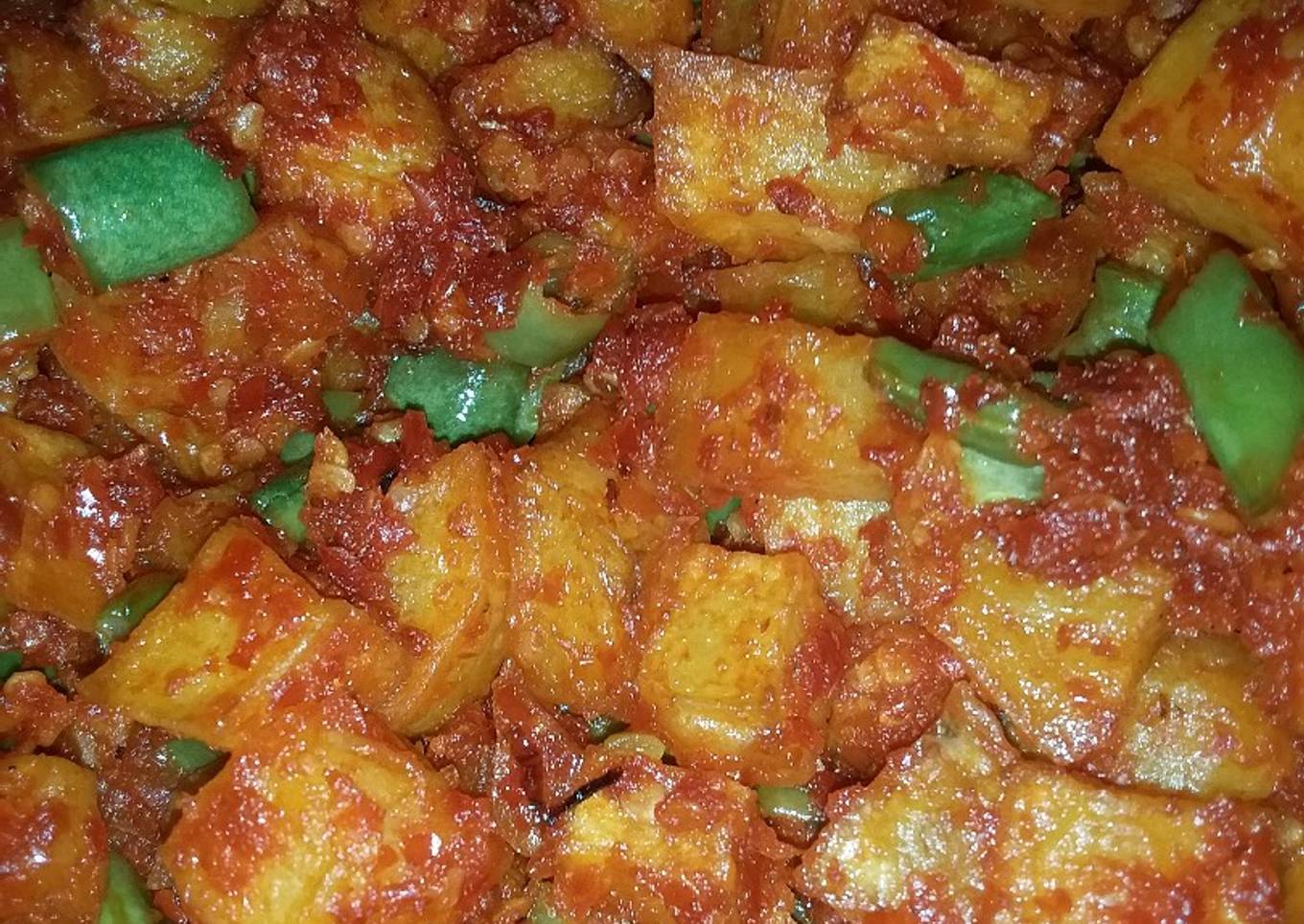 - Cabe di tumis sampai harum lalu masukkan gula dan garam cek rasa lalu masukkan kentang dan buncis yg sudah di goreng lalu aduk siap di hidangkan