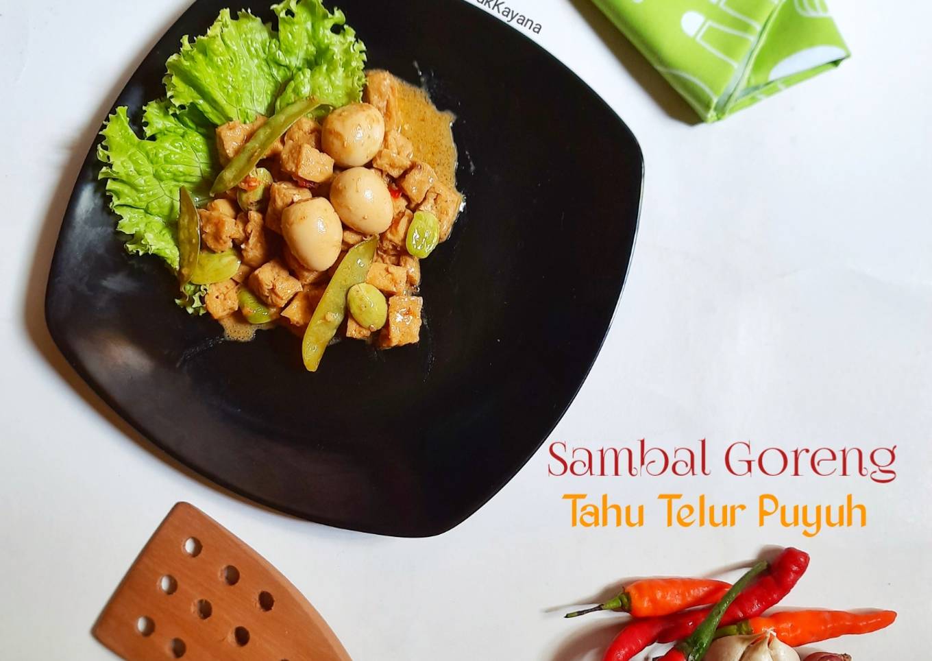 Saya coba jawab dengan sambal goreng tahu telur puyuh, di mana sambal gorengnya ini pakai santan di dalamnya. Sudah menjadi rahasia umum kalau memanaskan makanan bersantan maka rasanya akan lebih "keluar". Betul?