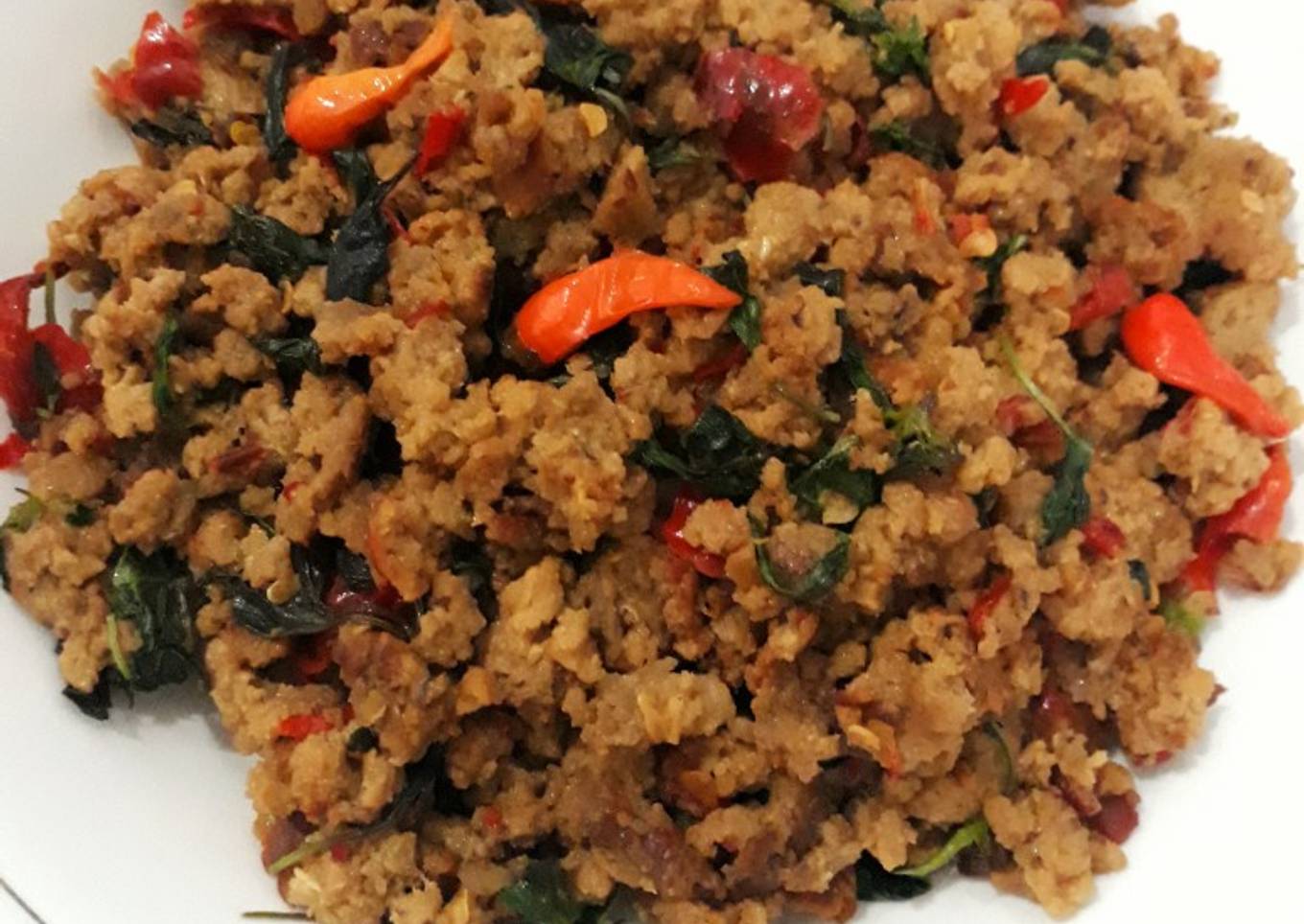 - Beri sedikit air,aduk.Masukkan daun kemangi. Aduk. Koreksi rasanya.