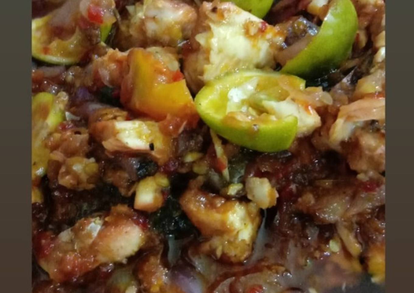 - Lalu masukan patin yg sdh digoreng 1/2 matang masak sampai matang koreksi rasa jika sdh pas sajikan n peraskan jeruk nipis diatasnya..