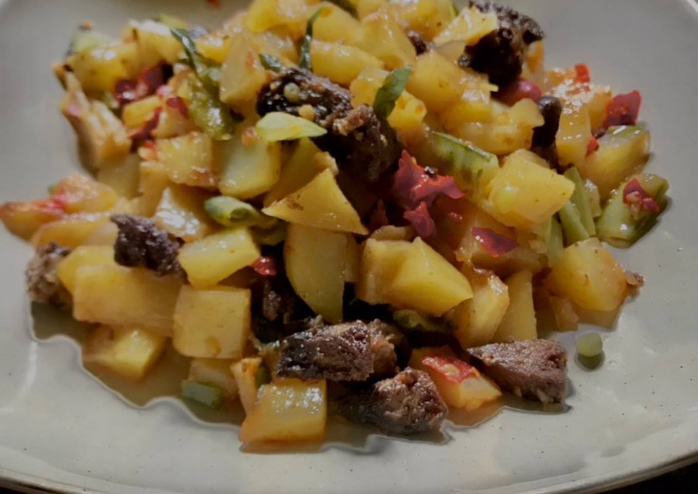 - Koreksi rasa dan setelah mendidih masukan kentang dan hati ayam lalu masukan daun bawang juga