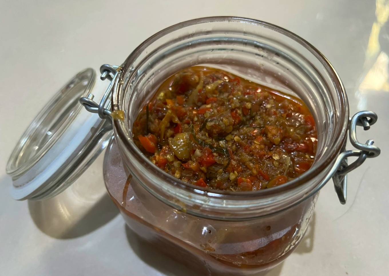 Ceritanya abis panen cabe, dah dibagi2 masih banyak juga, jadilah bikin sambel buat stok, supaya g perlu nyambel tiap hari 😎