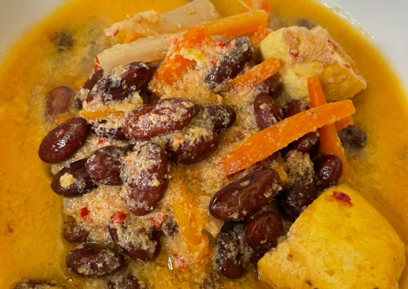 - Masukkan sayuran dan kacang merah, aduk-aduk.