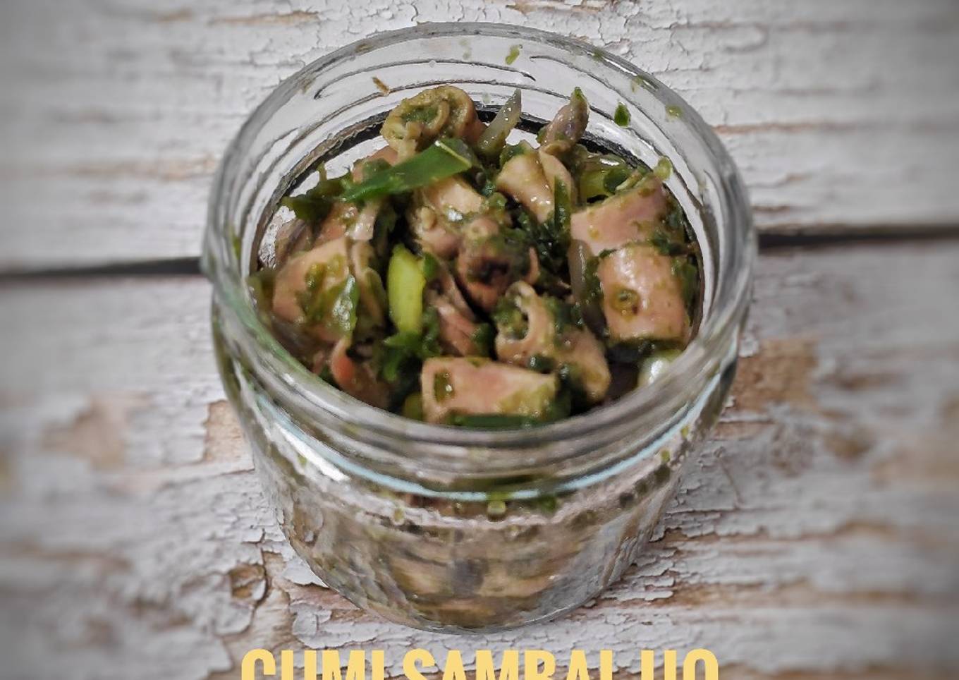 - Aduk rata cumi dengan cabe, kemudian masukkan daun jeruk dan tomat hijau. Masak sebentar hingga bumbu meresap ke cumi. Angkat dan siap disajikan.